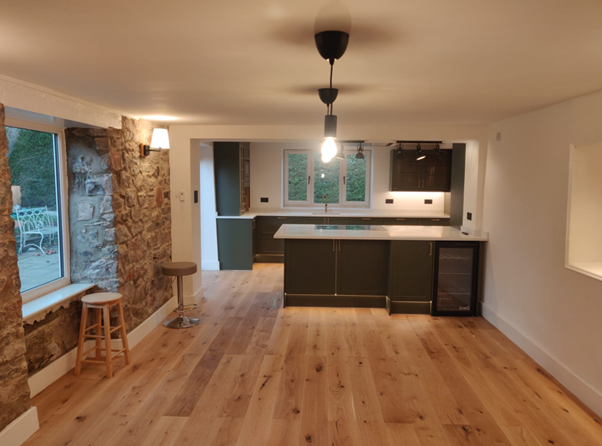 PRO Structures was appointed to design the structural works required to form a full-width opening within the kitchen of this farm house. A structural stability frame was installed to support the significant load from the thick random rubble stone wall above. The frame has been incorporated within and concealed by the kitchen island unit, enabling the space to be opened up while ensuring adequate structural support and enhancing the overall aesthetics.